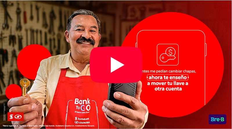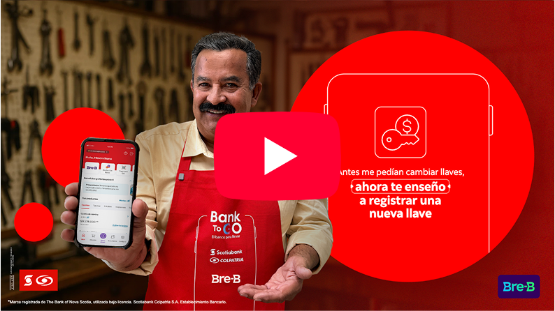 ®Marca registrada de The Bank of Nova Scotia, utilizada bajo licencia Scotiabank Colpatria. Scotiabank Colpatria Establecimiento Bancario. Por ninguna circunstancia Scotiabank Colpatria solicitará a sus clientes ingresar datos bancarios por medio de un enlace (link) de internet. Para actualizar sus datos personales deberá acercarse a una oficina, celular y correo electrónico podrán actualizarse a través de nuestra Línea de Atención. Las cuentas de ahorro y corriente son productos amparados por un seguro de Depósitos Fogafín. Consulta los Términos y Condiciones del registro y uso de Llaves en Bre-B;aquí
