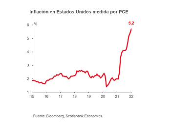 En Estados Unido el índice de precios de gastos de consumo personal (PCE), que es el principal indicador de inflación que sigue la Reserva Federal, aumentó en enero un 5.2% anual, un poco más que el 5.1% estimado por el mercado y siendo el nivel más alto desde abril de 1983. Al incluir los precios de los alimentos y la energía, el PCE subió un 6.1% anual.
